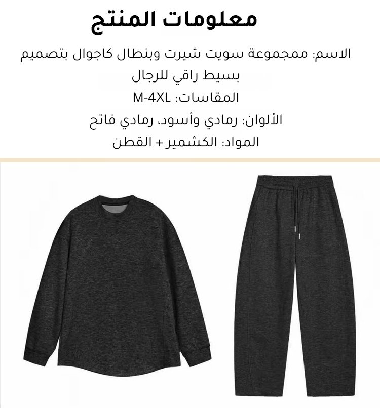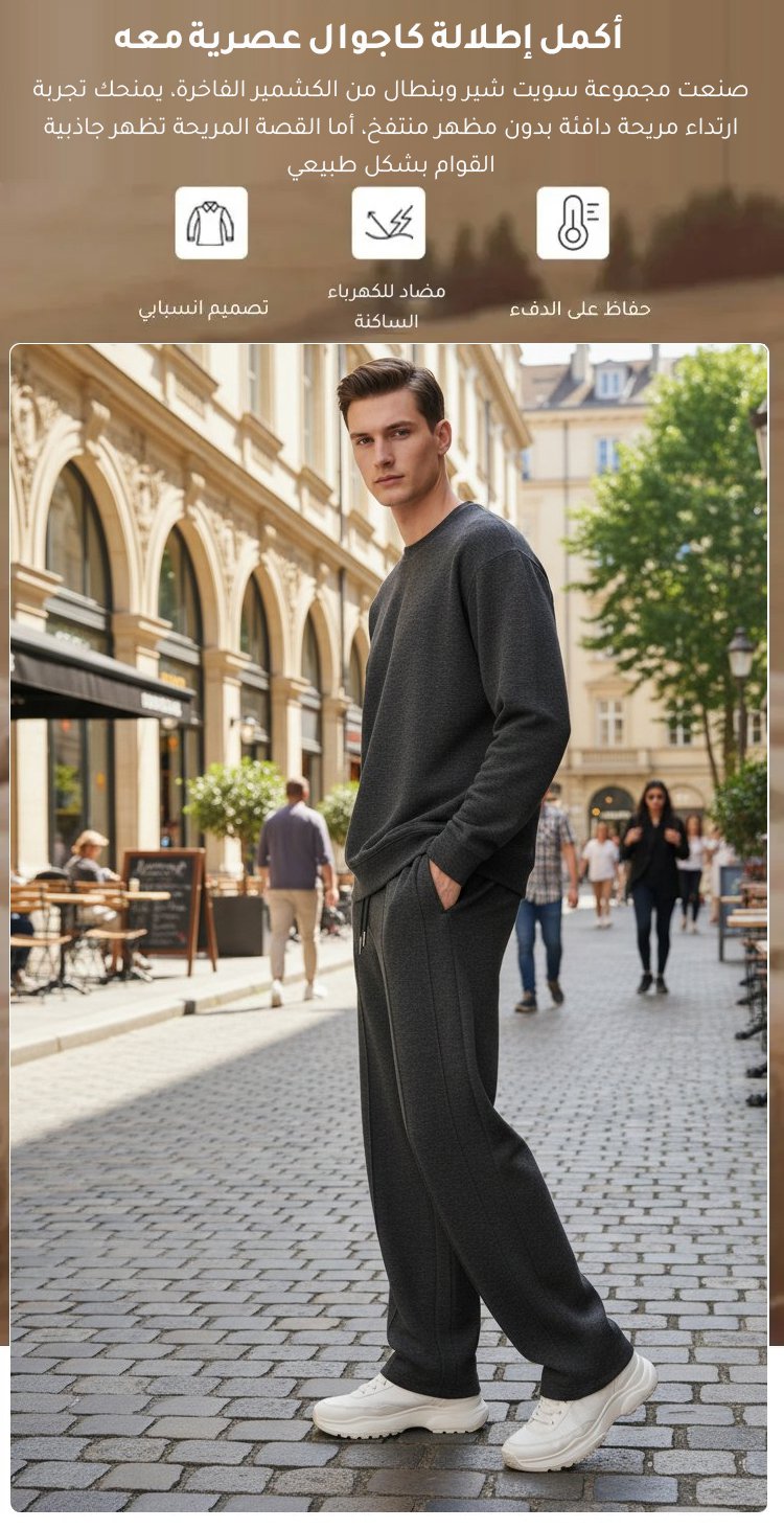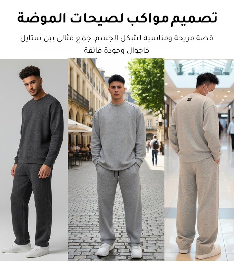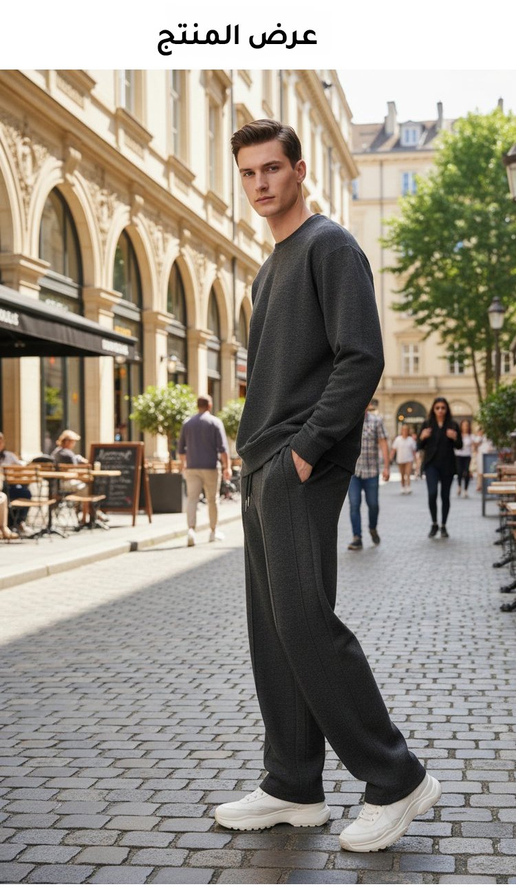 مجموعة سويت شيرت وبنطال كاجوال بتصميم بسيط راقي للرجال