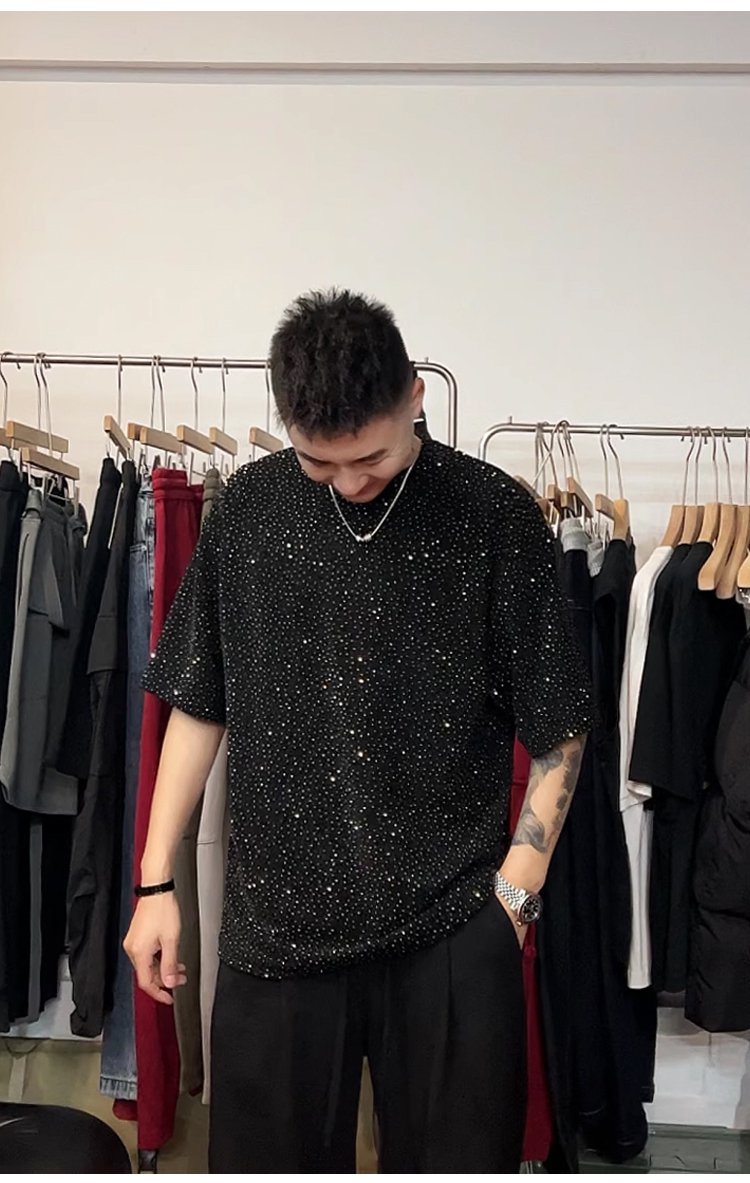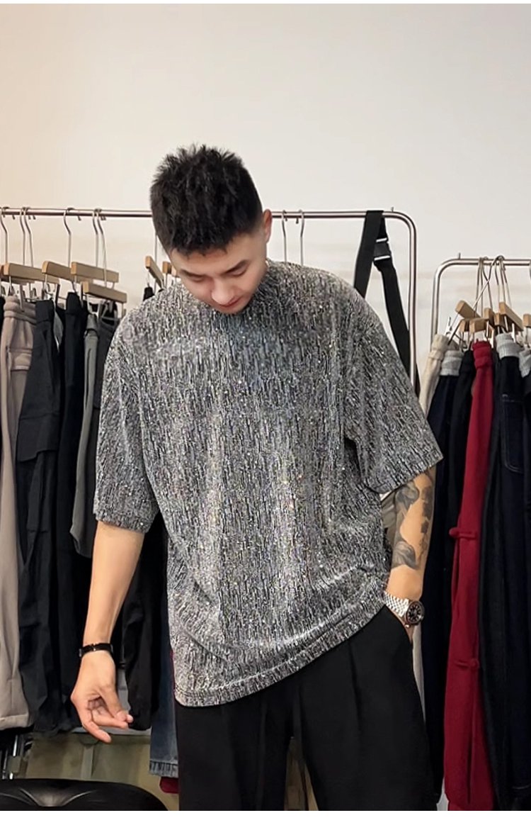 مجموعة تي شيرت وبنطال كاجوال عصري مرصع بترتر لامع بكاملها للرجال