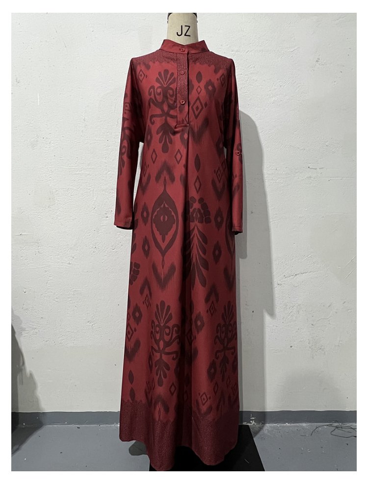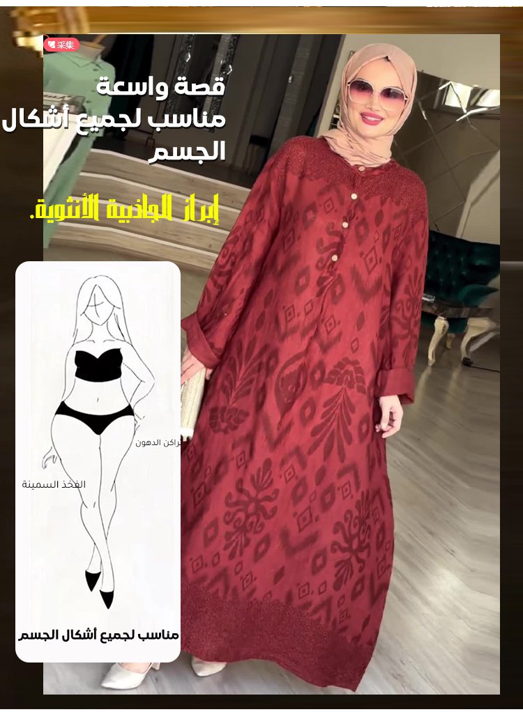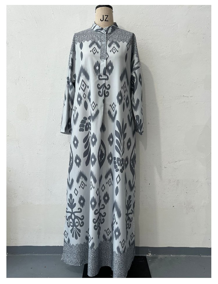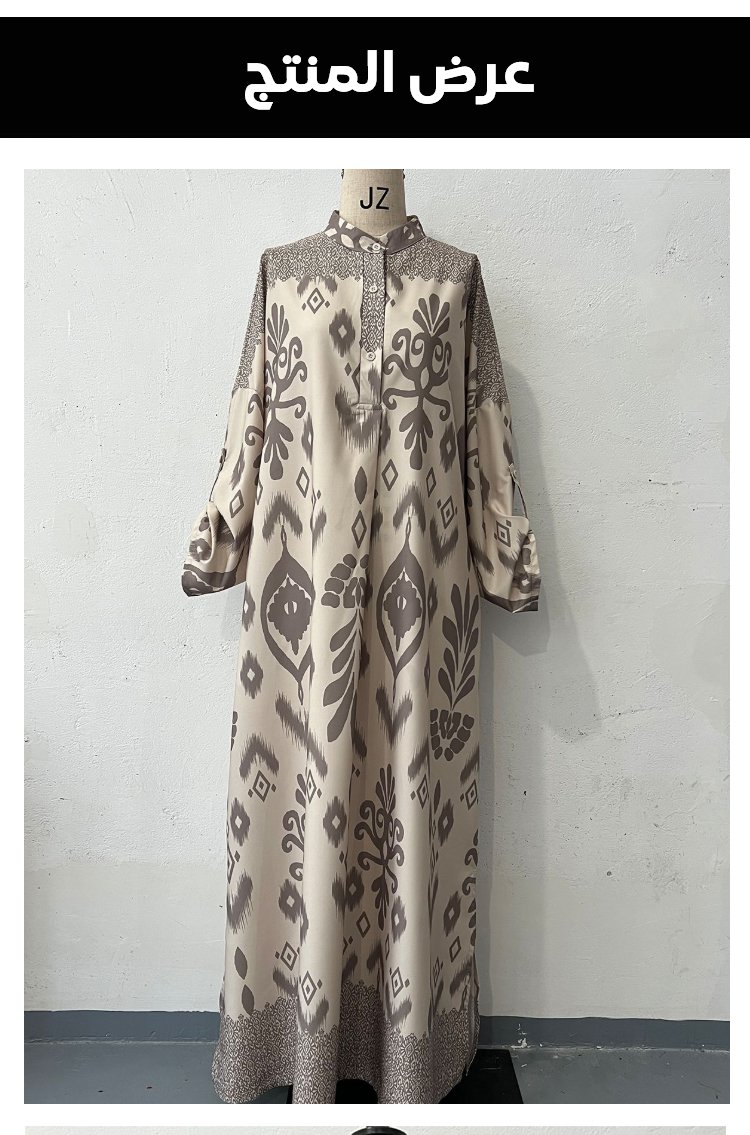 فستان نسائي عصري بأكمام طويلة من الحرير المطبوع بنمط جديد